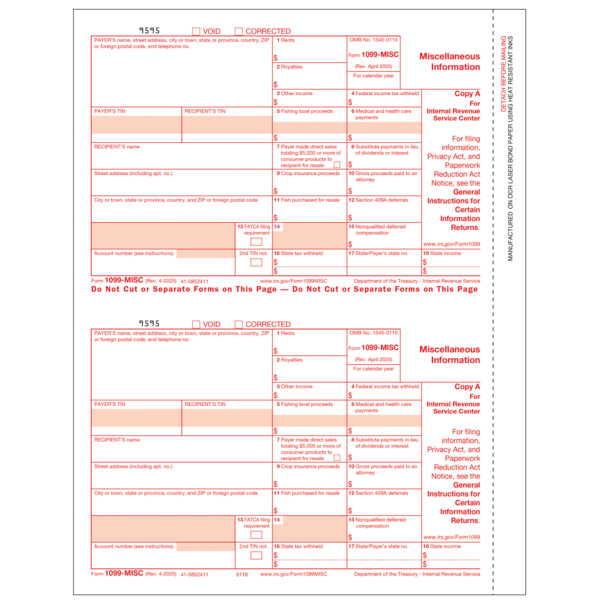 5110B 1099-MISC Federal Copy A - 500 Pack SKU: 5110B $110.19 Prior Job# Special Instructions Logo & Options : $0 - Color Logo $68 - Black Logo $90 - Color Logo No Charge - 1 Color Logo No Charge - Black Logo Quantity -+ Please select options before adding to cart Add to Cart Add to Cart