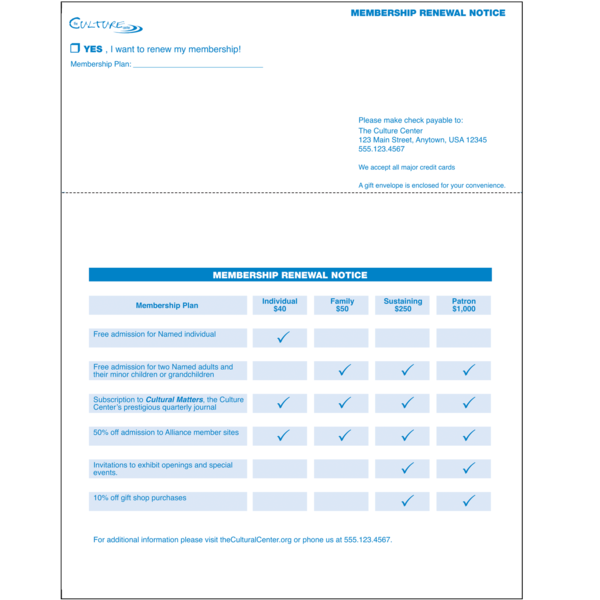 F863 Membership Renewal (1/pp) SKU: F863 $0.37 Options Back $0.37 REPEAT, NEW, OR REPEAT WITH CHANGES ? : Repeat New Repeat With Changes Prior Job# Special Instructions Company Information Line 1 Company Information Line 2 Company Information Line 3 Company Information Line 4 Company Information Line 5 City State Zip Phone Fax Email SELECT LOGO COLOR : Black Reflex Blue Process Blue Teal (PMS 320) Green (PMS 348) Green (PMS 347) Brown (PMS 464) Maroon (PMS 201) Burgundy (PMS 208) Warm Red Red (PMS 185) Orange (PMS 151) Gray (PMS 423) Custom Color Logo & Options : $0 - Color Logo $68 - Black Logo $90 - Color Logo No Charge - 1 Color Logo No Charge - Black Logo Quantity -+ Please select options before adding to cart Add to Cart Add to Cart