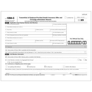 1095CIRS 1095-C IRS Copy A - 50 Pack